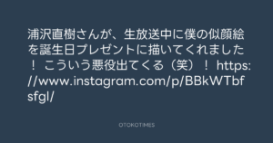 寺岡呼人 @yohito_teraoka – 22:55・2016年2月9日 2016 2/09 寺岡呼人 2016-02-09 浦沢直樹さんが、生放送中に僕の似顔絵を誕生日プレゼントに描いてくれました! こういう悪役出てくる(笑)! https://www.instagram.com/p/BBkWTbfsfgI/ Source:https://x.com/yohito_teraoka/status/69705615401... text X Post 寺岡呼人 寺岡呼人 この記事が気に入ったら フォローしてね! Follow @OtokoTimes1988 よかったらシェアしてね! URLをコピーしました! 寺岡 呼人 @yohitoteraoka - 22:55・2016年2月9日(IG post) 青山英樹 @aoyama_hideki - 16:12・2016年2月10日 関連記事 Artist 寺岡呼人 1968.02.07