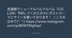 武道館でニューアルバムアルバム「COLOR」予約してくれた方々にポストカードにサインを書いております!