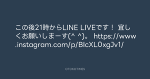 寺岡呼人 @yohito_teraoka – 20:08・2016年7月29日 2016 7/29 寺岡呼人 2016-07-29 この後21時からLINE LIVEです! 宜しくお願いしまーす(^ ^)。 https://www.instagram.com/p/BIcXL0xgJv1/ Source:https://x.com/yohito_teraoka/status/75898258648... text X Post 寺岡呼人 寺岡呼人 この記事が気に入ったら フォローしてね! Follow @OtokoTimes1988 よかったらシェアしてね! URLをコピーしました! 寺岡 呼人 @yohitoteraoka - 20:08・2016年7月29日(IG post) Koyo Maeda @koyomaeda - 20:39・2016年7月29日 関連記事 Artist 寺岡呼人 1968.02.07