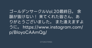 寺岡呼人 @yohito_teraoka – 15:59・2016年8月3日 2016 8/03 寺岡呼人 2016-08-03 ゴールデンサークルVol.20最終日。 余韻が抜けない! 来てくれた皆さん、ありがとうございました。 また逢えますように。 https://www.instagram.com/p/BIoyoCAAmQg/ Source:https://x.com/yohito_teraoka/status/76073177869... text X Post 寺岡呼人 寺岡呼人 この記事が気に入ったら フォローしてね! Follow @OtokoTimes1988 よかったらシェアしてね! URLをコピーしました! 寺岡 呼人 @yohitoteraoka - 15:59・2016年8月3日(IG post) 寺岡呼人 @yohito_teraoka - 16:12・2016年8月3日 関連記事 Artist 寺岡呼人 1968.02.07