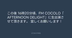 寺岡呼人 @yohito_teraoka – 16:12・2016年8月3日 2016 8/03 寺岡呼人 2016-08-03 この後 16時20分頃、FM COCOLO「AFTERNOON DELIGHT」に生出演させて頂きます。 宜しくお願いします! Source:https://x.com/yohito_teraoka/status/76073506675... text X Post 寺岡呼人 寺岡呼人 この記事が気に入ったら フォローしてね! Follow @OtokoTimes1988 よかったらシェアしてね! URLをコピーしました! 寺岡呼人 @yohito_teraoka - 15:59・2016年8月3日 寺岡 呼人 @yohitoteraoka - 20:15・2016年8月3日(IG post) 関連記事 Artist 寺岡呼人 1968.02.07