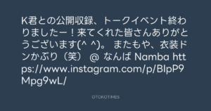 K君との公開収録、トークイベント終わりましたー!来てくれた皆さんありがとうございます(^ ^)。