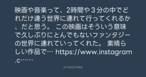 映画や音楽って、2時間や3分の中でどれだけ違う世界に連れて行ってくれるか、だと思う。