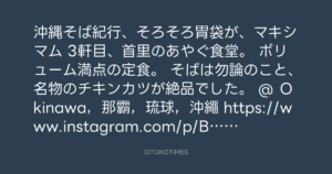 そばは勿論のこと、名物のチキンカツが絶品でした。 @ Okinawa,那霸,琉球,沖繩 https://www.instagram.com/p/BMdGc_IA_m1/