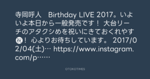 寺岡呼人 Birthday LIVE 2017。いよいよ本日から一般発売です!