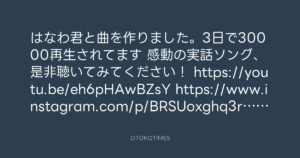 はなわ君と曲を作りました。3日で30000再生されてます😃