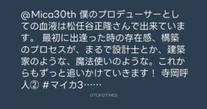 @Mica30th 僕のプロデューサーとしての血液は松任谷正隆さんで出来ています。