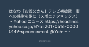 はなわ「お義父さん」テレビ初披露 妻への感謝を歌に(スポニチアネックス) – Yahoo!ニュース https://headlines.yahoo.co.jp/hl?a=20170516-00000149-spnannex-ent @YahooNewsTopics