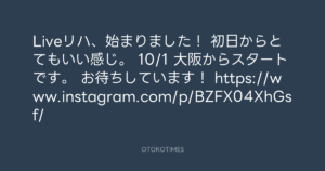 寺岡呼人 @yohito_teraoka – 10:45・2017年9月16日 2017 9/16 寺岡呼人 2017-09-16 Liveリハ、始まりました! 初日からとてもいい感じ。 10/1 大阪からスタートです。 お待ちしています! https://www.instagram.com/p/BZFX04XhGsf/ Source:https://x.com/yohito_teraoka/status/90886944350... text X Post 寺岡呼人 寺岡呼人 この記事が気に入ったら フォローしてね! Follow @OtokoTimes1988 よかったらシェアしてね! URLをコピーしました! 寺岡 呼人 @yohitoteraoka - 10:45・2017年9月16日(IG post) 寺岡 呼人 @yohitoteraoka - 00:23・2017年9月19日(IG post) 関連記事 Artist 寺岡呼人 1968.02.07