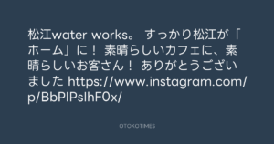 寺岡呼人 @yohito_teraoka – 22:44・2017年11月8日 2017 11/08 寺岡呼人 2017-11-08 松江water works。 すっかり松江が「ホーム」に! 素晴らしいカフェに、素晴らしいお客さん! ありがとうございました😊 https://www.instagram.com/p/BbPIPsIhF0x/ Source:https://x.com/yohito_teraoka/status/92825694664... text X Post 寺岡呼人 寺岡呼人 この記事が気に入ったら フォローしてね! Follow @OtokoTimes1988 よかったらシェアしてね! URLをコピーしました! 寺岡 呼人 @yohitoteraoka - 22:44・2017年11月8日(IG post) Koyo Maeda @koyomaeda - 16:02・2017年11月9日 関連記事 Artist 寺岡呼人 1968.02.07