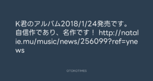 寺岡呼人 @yohito_teraoka – 8:17・2017年11月20日 2017 11/20 寺岡呼人 2017-11-20 K君のアルバム2018/1/24発売です。 自信作であり、名作です! http://natalie.mu/music/news/256099?ref=ynews Source:https://x.com/yohito_teraoka/status/93238732244... text X Post 寺岡呼人 寺岡呼人 この記事が気に入ったら フォローしてね! Follow @OtokoTimes1988 よかったらシェアしてね! URLをコピーしました! 青山英樹 @aoyama_hideki - 0:56・2017年11月20日 寺岡 呼人 @yohitoteraoka - 10:19・2017年11月21日(IG post) 関連記事 Artist 寺岡呼人 1968.02.07