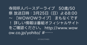 放送日時:3月25日(日)よる8:00~ [WOWOWライブ]