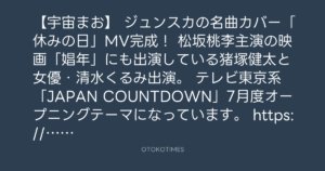 ジュンスカの名曲カバー「休みの日」MV完成!