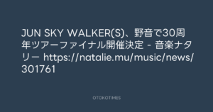 寺岡呼人 @yohito_teraoka – 2:55・2018年9月30日 2018 9/30 寺岡呼人 2018-09-30 JUN SKY WALKER(S)、野音で30周年ツアーファイナル開催決定 – 音楽ナタリー https://natalie.mu/music/news/301761 Source:https://x.com/yohito_teraoka/status/10460962352... text X Post 寺岡呼人 寺岡呼人 この記事が気に入ったら フォローしてね! Follow @OtokoTimes1988 よかったらシェアしてね! URLをコピーしました! 寺岡呼人 @yohito_teraoka - 2:54・2018年9月30日 🎬 寺岡 呼人 @yohitoteraoka - 17:39・2018年10月1日(IG post) 関連記事 Artist 寺岡呼人 1968.02.07