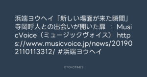 浜端ヨウヘイ「新しい場面が来た瞬間」寺岡呼人との出会いが開いた扉 : MusicVoice(ミュージックヴォイス) https://www.musicvoice.jp/news/201902110113312/