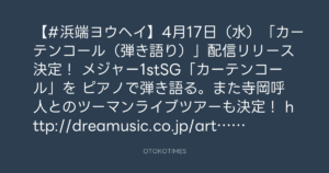 #浜端ヨウヘイ】4月17日(水)「カーテンコール(弾き語り)」配信リリース決定! メジャー1stSG「カーテンコール」を ピアノで弾き語る。また寺岡呼人とのツーマンライブツアーも決定! http://dreamusic.co.jp/artist/hamabat…