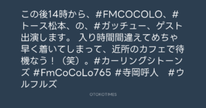 この後14時から、#FMCOCOLO、#トース松本、の、#ガッチュー、ゲスト出演します。