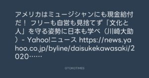 アメリカはミュージシャンにも現金給付だ! フリーも自営も見捨てず「文化と人」を守る姿勢に日本も学べ(川崎大助)- Yahoo!ニュース https://news.yahoo.co.jp/byline/daisukekawasaki/20200329-00170242/