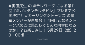 #奥田民生 の #テレワーク による第11回『#カンタンテレタビレ』プレミア公開決定!