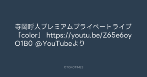 寺岡呼人 @yohito_teraoka – 10:08・2020年7月2日 2020 7/02 寺岡呼人 2020-07-02 寺岡呼人プレミアムプライベートライブ「color」 https://youtu.be/Z65e6oyO1B0 @YouTubeより Source:https://x.com/yohito_teraoka/status/12784958510... text X Post 寺岡呼人 寺岡呼人 この記事が気に入ったら フォローしてね! Follow @OtokoTimes1988 よかったらシェアしてね! URLをコピーしました! 寺岡呼人 @yohito_teraoka - 21:15・2020年7月1日 寺岡呼人 @yohito_teraoka - 10:09・2020年7月2日 関連記事 Artist 寺岡呼人 1968.02.07