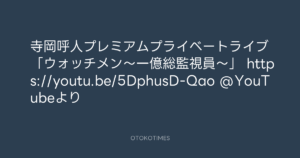 寺岡呼人 @yohito_teraoka – 9:54・2020年10月12日 2020 10/12 寺岡呼人 2020-10-12 寺岡呼人プレミアムプライベートライブ「ウォッチメン〜一億総監視員〜」 https://youtu.be/5DphusD-Qao @YouTubeより Source:https://x.com/yohito_teraoka/status/13154556777... text X Post 寺岡呼人 寺岡呼人 この記事が気に入ったら フォローしてね! Follow @OtokoTimes1988 よかったらシェアしてね! URLをコピーしました! 青山英樹 @aoyama_hideki - 23:05・2020年10月10日 Koyo Maeda @koyomaeda - 14:22・2020年10月13日 関連記事 Artist 寺岡呼人 1968.02.07