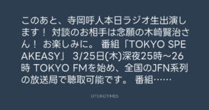 番組HP:https://www.tfm.co.jp/speakeasy/