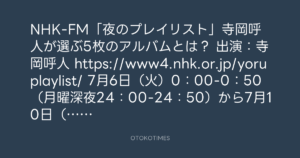 NHK-FM「夜のプレイリスト」寺岡呼人が選ぶ5枚のアルバムとは?