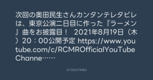 次回の奥田民生さんカンタンテレタビレは、東京公演二日目に作った『ラーメン』曲をお披露目!