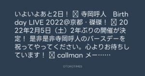 是非是非寺岡呼人のバースデーを祝ってやってください。心よりお待ちしています!