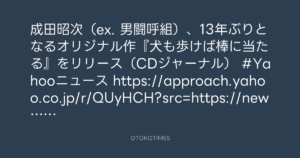 成田昭次(ex. 男闘呼組)、13年ぶりとなるオリジナル作『犬も歩けば棒に当たる』をリリース(CDジャーナル)