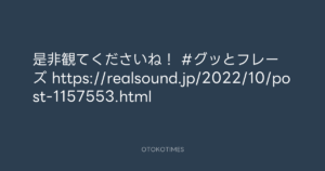 寺岡呼人 @yohito_teraoka – 21:11・2022年10月20日 2022 10/20 寺岡呼人 2022-10-20 是非観てくださいね! #グッとフレーズ https://realsound.jp/2022/10/post-1157553.html Source:https://x.com/yohito_teraoka/status/15830684145... text X Post 寺岡呼人 寺岡呼人 この記事が気に入ったら フォローしてね! Follow @OtokoTimes1988 よかったらシェアしてね! URLをコピーしました! THE FIRST TIMES_NEWS @The_FirstTimesN - 6:01・2022年10月20日 青山英樹 @aoyama_hideki - 21:20・2022年10月20日 関連記事 Artist 寺岡呼人 1968.02.07