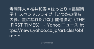 寺岡呼人×桜井和寿×はっとり×長屋晴子! スペシャルライブ『いつかの僕らの夢、星になれたかな』開催決定(THE FIRST TIMES) – Yahoo!ニュース https://news.yahoo.co.jp/articles/6bfaf6ebcef849b8c3964e1f53fc806b5797faea
