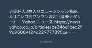 寺岡呼人2曲入りニューシングル発表、4月にレコ発ワンマン決定(音楽ナタリー) – Yahoo!ニュース https://news.yahoo.co.jp/articles/be246a1bea2f9a95084f24c229777895ce3eaa8c