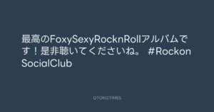 寺岡呼人 @yohito_teraoka – 10:57・2023年3月21日 2023 3/21 寺岡呼人 2023-03-21 最高のFoxySexyRocknRollアルバムです!是非聴いてくださいね。 #RockonSocialClub Source:https://x.com/yohito_teraoka/status/16379968617... text X Post 寺岡呼人 寺岡呼人 この記事が気に入ったら フォローしてね! Follow @OtokoTimes1988 よかったらシェアしてね! URLをコピーしました! 男闘呼組 @otokogumi.tokyo - 10:53・2023年3月21日(IG Stories) Rockon Social Club @rockonsocialclub - 14:56・2023年3月21日(IG post) 関連記事 Artist 寺岡呼人 1968.02.07