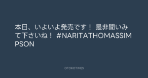 寺岡呼人 @yohito_teraoka – 9:02・2024年4月10日 2024 4/10 寺岡呼人 2024-04-10 本日、いよいよ発売です! 是非聞いみて下さいね! #NARITATHOMASSIMPSON Source:https://x.com/yohito_teraoka/status/17778495187... text X Post 寺岡呼人 寺岡呼人 この記事が気に入ったら フォローしてね! Follow @OtokoTimes1988 よかったらシェアしてね! URLをコピーしました! 東京レコード @tokyo_records - 9:00・2024年4月10日 寺岡 呼人 @yohitoteraoka - 09:05・2024年4月10日(IG post) 関連記事 Artist 寺岡呼人 1968.02.07