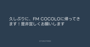 久しぶりに、FM COCOLOに帰ってきます!是非宜しくお願いします📻