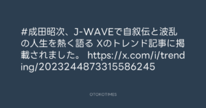 #成田昭次、J-WAVEで自叙伝と波乱の人生を熱く語る