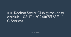 🎬 Rockon Social Club @rockonsocialclub – 08:17・2024年7月23日(IG Stories) 2024 7/23 Rockon Social Club 2024-07-23 Source:https://www.instagram.com/stories/rockonsocialc... IG Stories Rockon Social Club VIDEO Rockon Social Club この記事が気に入ったら フォローしてね! Follow @OtokoTimes1988 よかったらシェアしてね! URLをコピーしました! 寺岡呼人 @yohito_teraoka - 0:07・2024年7月23日 Rockon Social Club @rockonsocialclu - 9:24・2024年7月23日 関連記事 Artist Rockon Social Club 2023.02.17
