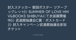 🎬 Rockon Social Club @rockonsocialclub – 12:37・2024年9月5日(IG Stories) 2024 9/05 Rockon Social Club 2024-09-05 封入ステッカー 歌詞ポスター ツアーブックレット✨ SUMMER OF LOVE HMV&BOOKS SHIBUYAにて衣装展開催中✨ 武道館抽選会C賞:ポストカード✨ 封入キャンペーン武道館抽選会参加チケット Source:https://www.instagram.com/stories/rockonsocialc... IG Stories Rockon Social Club VIDEO Rockon Social Club この記事が気に入ったら フォローしてね! Follow @OtokoTimes1988 よかったらシェアしてね! URLをコピーしました! HMVららぽーと柏の葉 @HMV_Kashiwanoha - 12:31・2024年9月5日 HMVイオンモール水戸内原 @HMV_Mito - 12:43・2024年9月5日 関連記事 Artist Rockon Social Club 2023.02.17