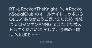 RT @RockonTheKnight: \ #RockonSocialClub のオールナイトニッポンGOLD/