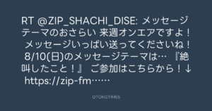 RT @ZIP_SHACHI_DISE: 💌メッセージテーマのおさらい💌