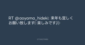 青山英樹 @aoyama_hideki – 22:19・2025年12月17日 2025 12/17 青山英樹 2025-12-17 RT @aoyama_hideki: 来年も宜しくお願い致します♪ 楽しみです✨ Source:https://x.com/aoyama_hideki/status/200128112109... text X Post 青山英樹 青山英樹 この記事が気に入ったら フォローしてね! Follow @OtokoTimes1988 よかったらシェアしてね! URLをコピーしました! Rockon Social Club @rockonsocialclu - 22:19・2025年12月17日 Rockon Social Club @rockonsocialclu - 22:19・2025年12月17日 関連記事 Artist 青山英樹 1986.08.29