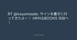 Koyo Maeda @koyomaeda – 17:59・2024年9月9日 2024 9/09 前田耕陽 2024-09-09 RT @koyomaeda: サインを書きに行ってきたよー! HMV&BOOKS 渋谷へ! Source:https://x.com/koyomaeda/status/1833067582292885870 text X Post 前田耕陽 前田耕陽 この記事が気に入ったら フォローしてね! Follow @OtokoTimes1988 よかったらシェアしてね! URLをコピーしました! 青山英樹 @aoyama_hideki - 17:58・2024年9月9日 東京レコード @tokyo_records - 18:00・2024年9月9日 関連記事 Artist 前田耕陽 1968.08.16