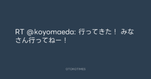 Koyo Maeda @koyomaeda – 14:43・2025年11月11日 2025 11/11 前田耕陽 2025-11-11 RT @koyomaeda: 行ってきた! みなさん行ってねー! Source:https://x.com/koyomaeda/status/1988120463080645090 text X Post 前田耕陽 前田耕陽 この記事が気に入ったら フォローしてね! Follow @OtokoTimes1988 よかったらシェアしてね! URLをコピーしました! Koyo Maeda @koyomaeda - 13:38・2025年11月11日 Rockon Social Club @rockonsocialclu - 16:04・2025年11月11日 関連記事 Artist 前田耕陽 1968.08.16