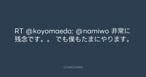 Koyo Maeda @koyomaeda – 12:17・2025年12月19日 2025 12/19 前田耕陽 2025-12-19 RT @koyomaeda: @namiwo 非常に残念です。。 でも僕もたまにやります。 Source:https://x.com/koyomaeda/status/2001854330090234076 text X Post 前田耕陽 前田耕陽 この記事が気に入ったら フォローしてね! Follow @OtokoTimes1988 よかったらシェアしてね! URLをコピーしました! 寺岡呼人 @yohito_teraoka - 12:17・2025年12月19日 Rockon Social Club @rockonsocialclub - 15:11・2025年12月19日(Instagram Stories) 関連記事 Artist 前田耕陽 1968.08.16