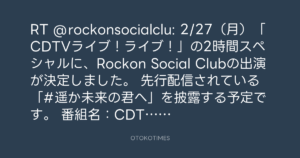 RT @rockonsocialclu: 2/27(月)「CDTVライブ!ライブ!」の2時間スペシャルに、Rockon Social Clubの出演が決定しました。