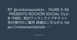 RT @rockonsocialclu: 「KURE 5-56 PRESENTS ROCKON SOCIAL CLUB 1988」初のワンマンライブチケット先行受付のご案内