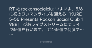 RT @rockonsocialclu: いよいよ、5/6に初のワンマンライブを迎える「KURE 5-56 Presents Rockon Social Club 1988」