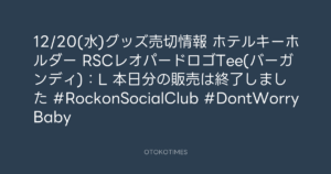 Rockon Social Club @rockonsocialclu – 13:44・2023年12月20日 2023 12/20 Rockon Social Club 2023-12-20 📣12/20(水)グッズ売切情報📣 📍ホテルキーホルダー 📍RSCレオパードロゴTee(バーガンディ):L 本日分の販売は終了しました🙇 #RockonSocialClub #DontWorryBaby Source:https://x.com/rockonsocialclu/status/1737333119... Rockon Social Club text X Post Rockon Social Club この記事が気に入ったら フォローしてね! Follow @OtokoTimes1988 よかったらシェアしてね! URLをコピーしました! 🎬 Addict of the Trip Minds @atripminds2021 - 13:36・2023年12月20日(IG post) Rockon Social Club @rockonsocialclu - 14:21・2023年12月20日 関連記事 Artist Rockon Social Club 2023.02.17