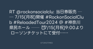 RT @rockonsocialclu: 📢当日券販売🎫